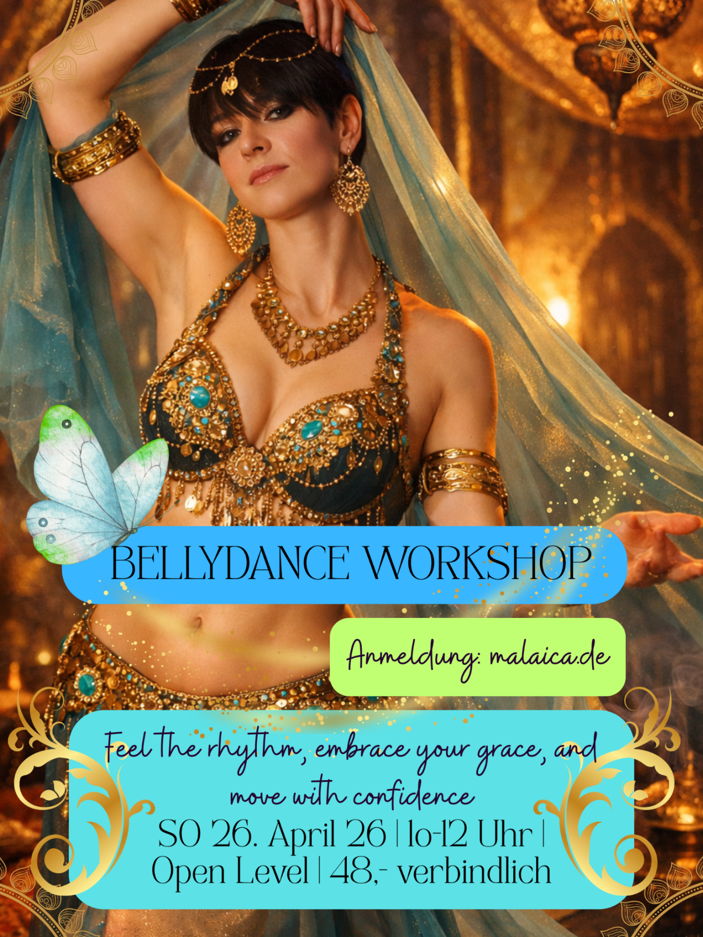 Ich bin geprüfte Bühnentänzerin, Tanzpädagogin und Therapeutin und Deutsche Meisterin im Oriental Fusion (2022).